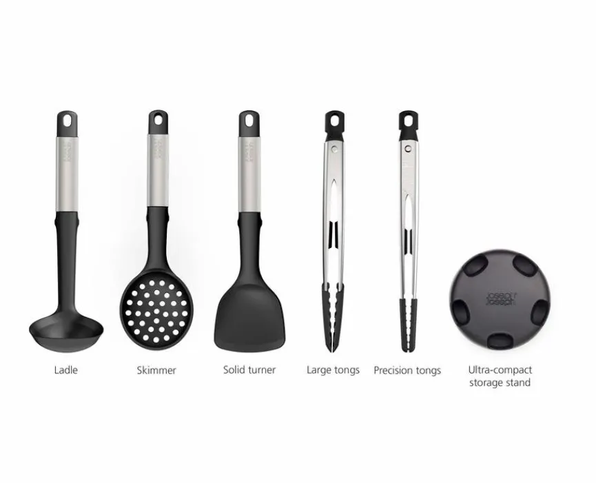 Beim stylischen Küchenhelfer-Set Elevate Fusion 6tlg. von Joseph Joseph hat jedes einzelne Teil seinen Platz. In Reih und Glied angeordnet sieht es nicht nur elegant aus, sondern es sorgt auch dafür, dass Sie die Utensilien beim Kochen stets griffbereit haben. Da das Küchenhelfer-Set Elevate Fusion 6tlg. spülmaschinenfest und hitzebeständig ist, haben Sie lange Freude damit.