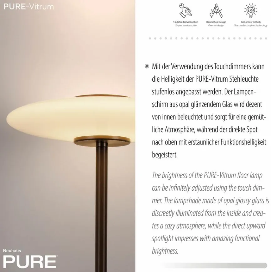 Der LED-Deckenfluter Pure Vitrum von Neuhaus PURE vereint ein elegantes Erscheinungsbild mit zeitgemäßer Technologie. Da die Deckenfluter-LED in drei Helligkeitsstufen reguliert werden können, lässt sich die Beleuchtung ganz an Ihre individuellen Bedürfnisse anpassen. Zudem fügt sich der LED-Deckenfluter Pure Vitrum dank seines zurückhaltenden Designs mit Leichtigkeit in die unterschiedlichsten Wohnstile ein.