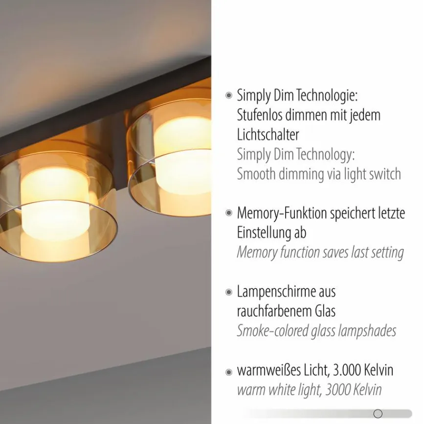 Mit ihrer klassischen Formensprache fügt sich die LED-Deckenleuchte RIKA von Paul Neuhaus stilvoll in das vorhandene Interieur ein. Gleichzeitig weiß die LED-Deckenlampe mit ihrer modernen Lichttechnik zu überzeugen, die für einen energieeffizienten Betrieb sorgt. Dabei kreiert die LED-Deckenleuchte RIKA mit ihrem warmweißen Licht in Ihren Wohnräumen eine Wohlfühl-Atmosphäre.