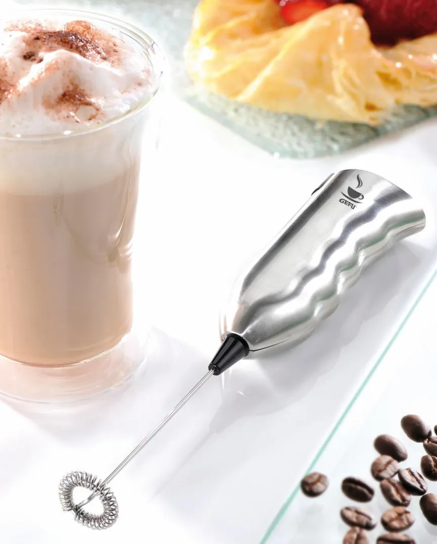 Mit dem Milchaufschäumer Macello der Marke GEFU zaubern Sie den perfekten Cappuccino! Dieses elegante Modell überzeugt mit seiner exklusiven Linienführung und seinem hochwertigen Quirl. Ob Latte Macchiato oder feinschaumiges Süppchen, der Milchaufschäumer Macello von GEFU ist unkompliziert zu bedienen und liegt angenehm in der Hand.