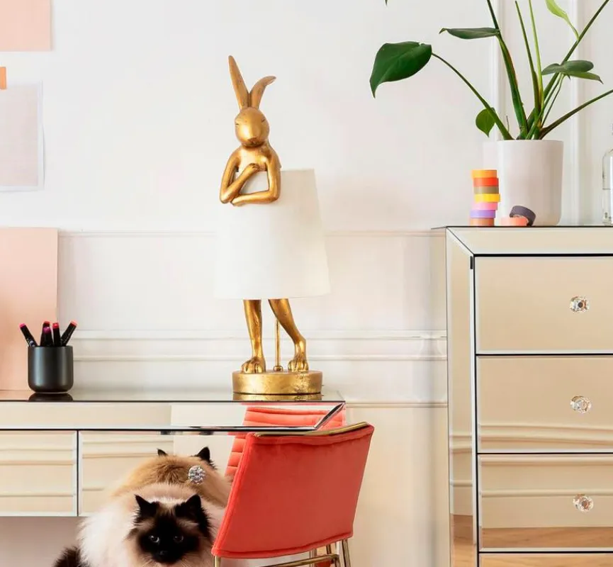 Wenn Sie sich einen besonderen Blickfang wünschen, wird die hochwertige Tischleuchte ANIMAL RABBIT von KARE genau richtig sein. Die außergewöhnliche Tischlampe mit dem niedlichen Tierkörper als Gestell ist wirklich originell. Zudem verstrahlt die attraktive Tischleuchte ANIMAL RABBIT der Marke KARE genügend Helligkeit auf dem Schreibtisch, dem Nachtschrank oder dem Beistelltisch im Wohnzimmer.