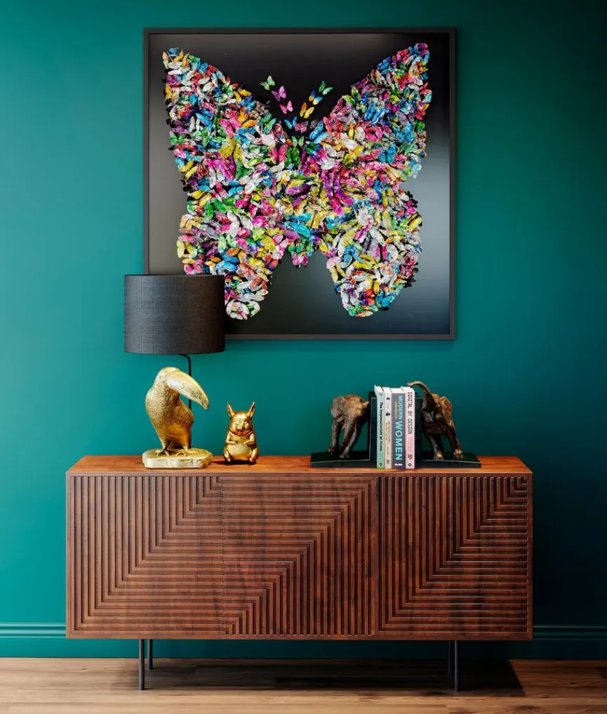 Wenn Sie Ihr Zuhause mit einem prachtvollen farbenfrohen Blickfang verschönern möchten, treffen Sie mit dem Wandobjekt Fafalla 51628 von KARE DESIGN eine gute Wahl. Die auffällige, äußerst effektvolle Wanddeko bereichert Ihre private Galerie und sorgt auf unkomplizierte Weise für eine optische Auflockerung großer Flächen. Sie können das dekorative Wandobjekt Fafalla 51628 beispielsweise über einem Sideboard oder über dem Bett aufhängen und damit ansprechende Akzente setzen.