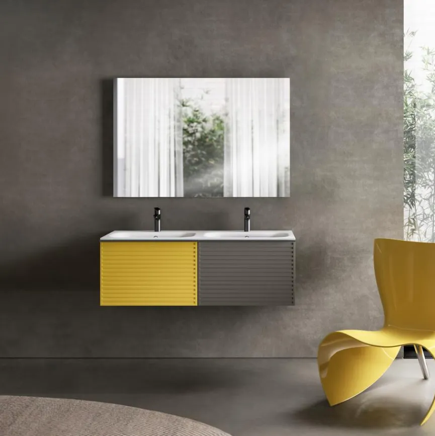 - Waschtischunterschrank mit 1 Auszug und der Fronttype Stripes in sonnengelb matt lackiert