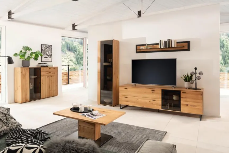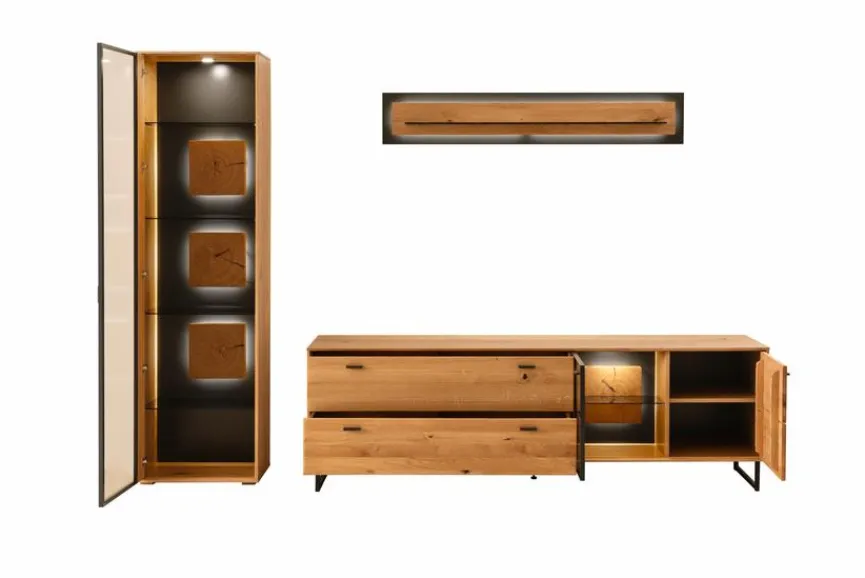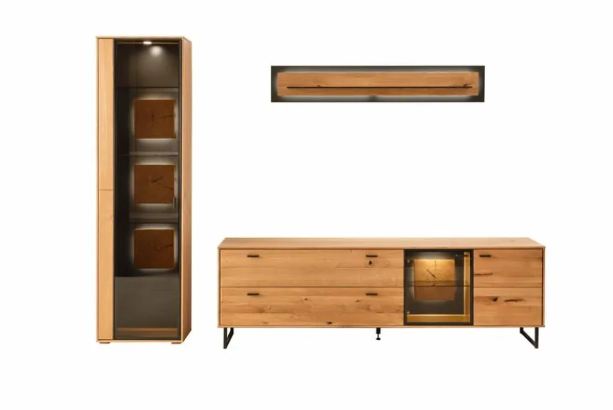 - Wohnwand aus Vitrine, TV-Element und Wandboard