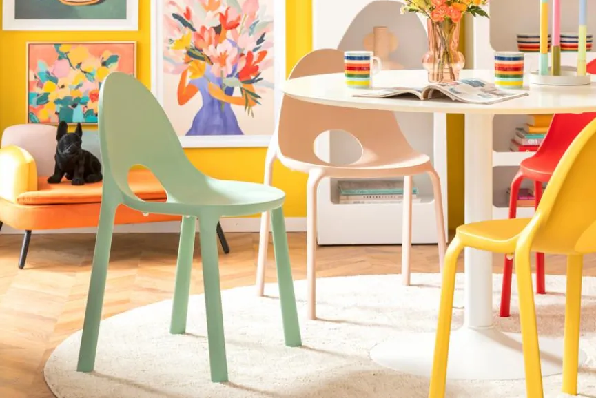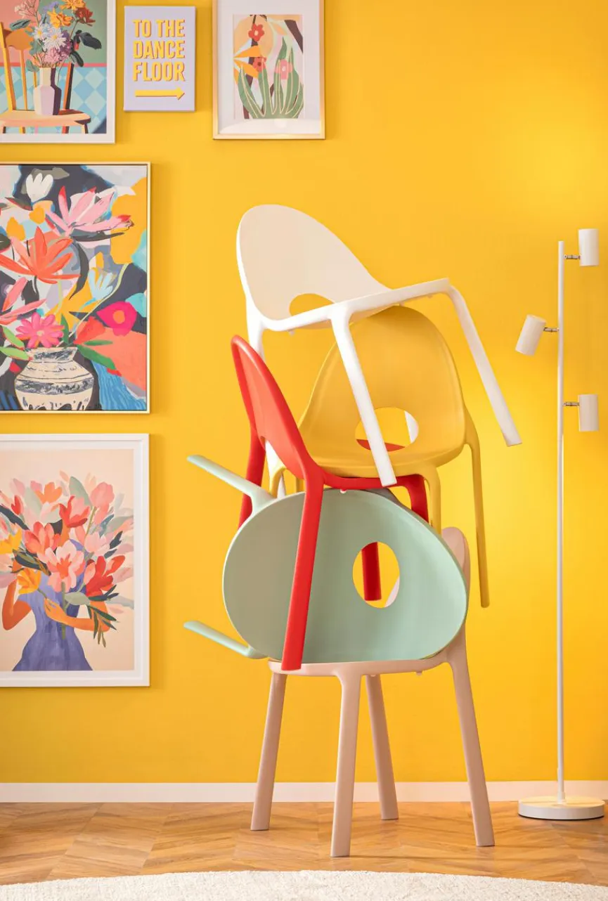 Auf dem Fiberglas-Stuhl Drop aus dem Hause Infiniti lässt es sich im Innen- und Außenbereich wunderbar lange sitzen. Die schön geschwungenen Sitzmöbel mit Loch im unteren Rückenlehnenbereich ziehen alle Blicke auf sich. Dabei sind sie auch noch schön leicht und stapelbar.