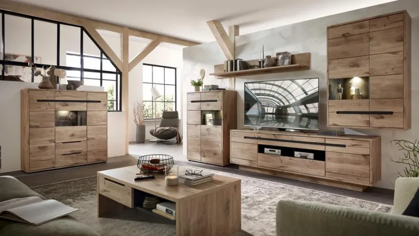 - Korpus aus Holzwerkstoff (Spanplatte) mit Dekorfolie in Viking Oak nature