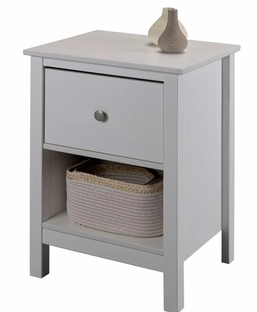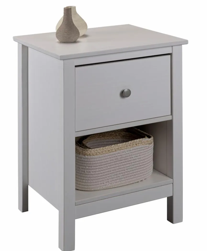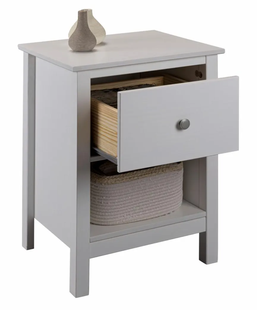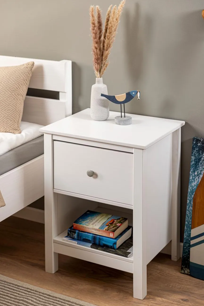 Mit der Nachtkommode Chilly aus dem Hause Inter Link erhalten Sie ein kompaktes Möbelstück im ansprechenden Retro-Chic. Der Nachttisch garantiert Ihnen, dass Sie zur späten Stunde viele Utensilien griffbereit haben. Dafür bietet Ihnen die Nachtkommode Chilly eine große Ablage, eine Schublade und ein offenes Fach.