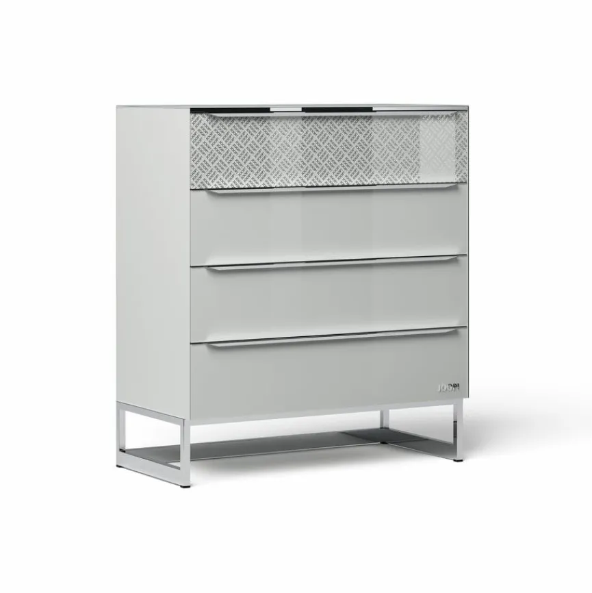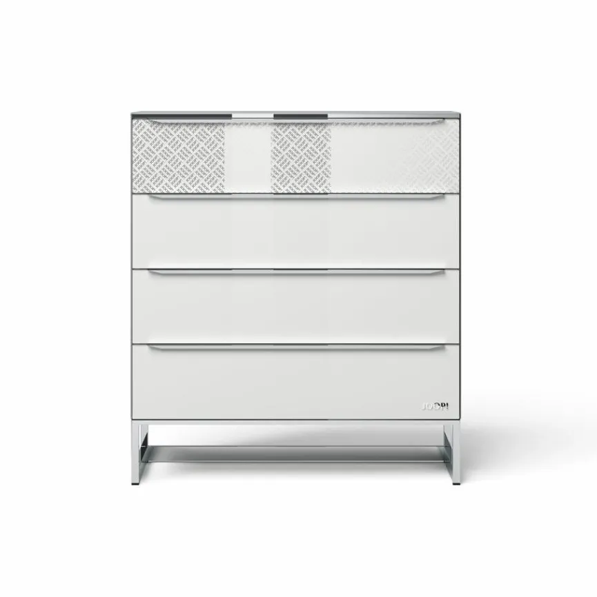 Mit der Kommode Glass aus der Möbelkollektion von JOOP! können Sie das Interieur Ihres Wohn- oder Schlafzimmers um eine edle Komponente bereichern. Der Korpus und die Fronten sind mit Alpinweißglas belegt und der obere Schubkasten zeigt das Markenlogo, das im hochwertigen Siebdruckverfahren aufgebracht wurde. Zudem bietet Ihnen die Kommode Glass aus dem Hause JOOP! viel Stauraum für diverse Utensilien.