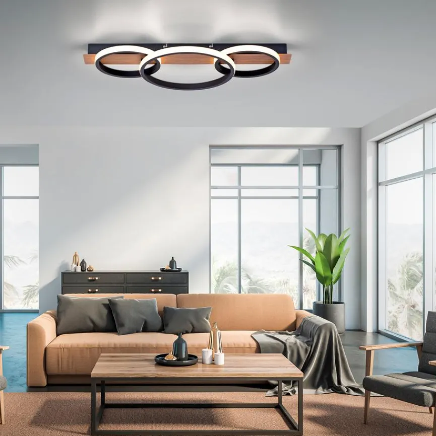 Wenn Sie auf der Suche nach einem neuen Blickfang für Ihre Wohnung sind, dann sollten Sie sich für die LED-Deckenleuchte Trooper der Marke Leuchten Direkt entscheiden. Das moderne Design zieht sicherlich sämtliche Blicke auf sich. Durch das Holzdekor der LED-Deckenlampe erhält jeder Raum eine wohnliche Atmosphäre. Ein Pluspunkt ist, dass die LED-Deckenleuchte Trooper durch die geringe Höhe selbst für niedrige Decken perfekt geeignet ist.