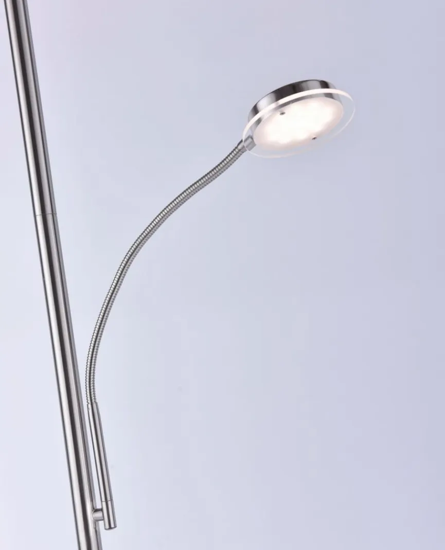 Die LED-Stehlampe HANS von LeuchtenDirekt strahlt Modernität und schlichte Eleganz aus. Ein flacher, runder Schirm bestimmt den oberen Abschluss dieser puristisch designten LED-Stehleuchte. Dank der Leseleuchte bietet sich die LED-Stehlampe HANS aus dem Hause LeuchtenDirekt zum Beispiel zum Aufstellen neben einer Couch oder einem Sessel an.