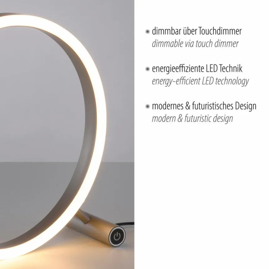 Die Leuchten Direkt LED-Tischleuchte Ritus verfügt über einen dreistufigen Touchdimmer und brilliert mit einer kreativen Designidee fürs zeitgemäße Ambiente. Ein ringförmiger Leuchtkörper bestimmt im Wesentlichen den Look dieser LED-Tischlampe. Platzieren Sie die LED-Tischleuchte Ritus zum Beispiel auf einem minimalistisch gestalteten Beistelltischchen neben einem schicken Loungesessel!