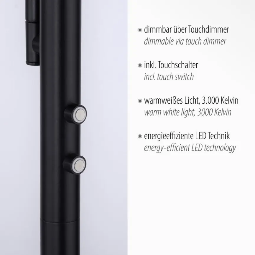 - Mit Tastdimmer zum Dimmen des Fluterkopfes und Tastschalter zum An- und Ausschalten des Lesearmes