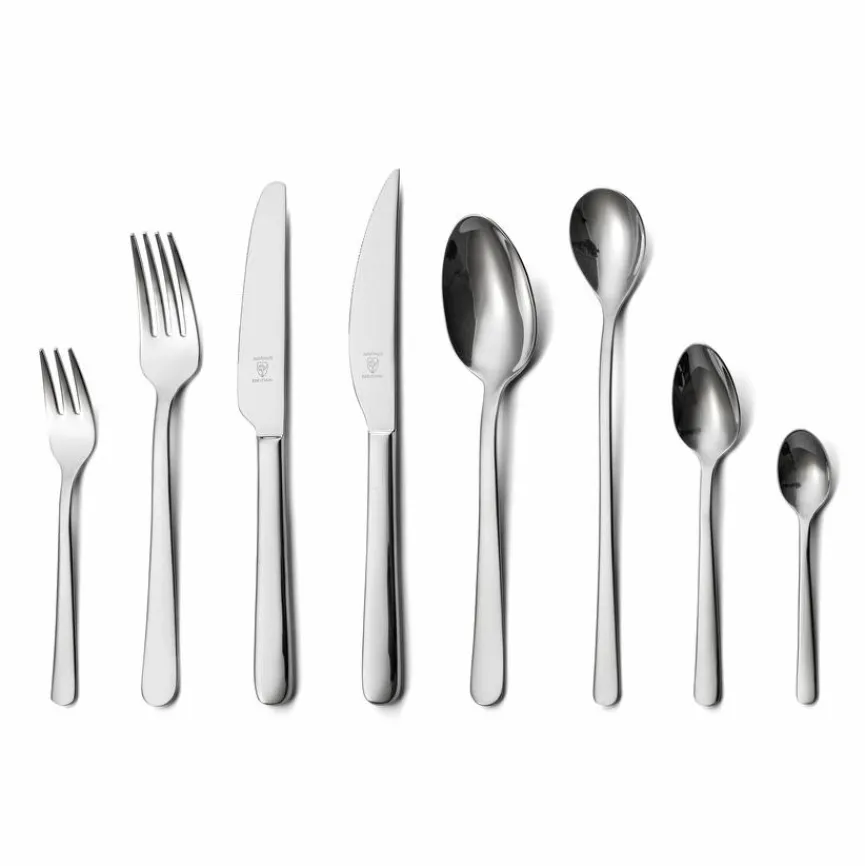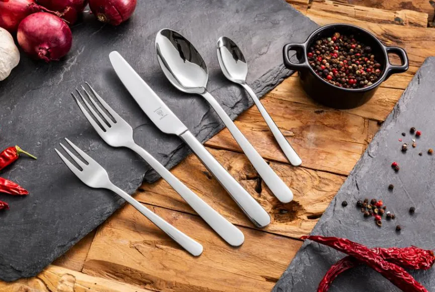 - Artikel beinhaltet je 6x Menülöffel, Menügabel, Menümesser, Steak-/Pizzamesser, Espressolöffel, Latte-/Limolöffel, Kaffeelöffel und Kuchengabel