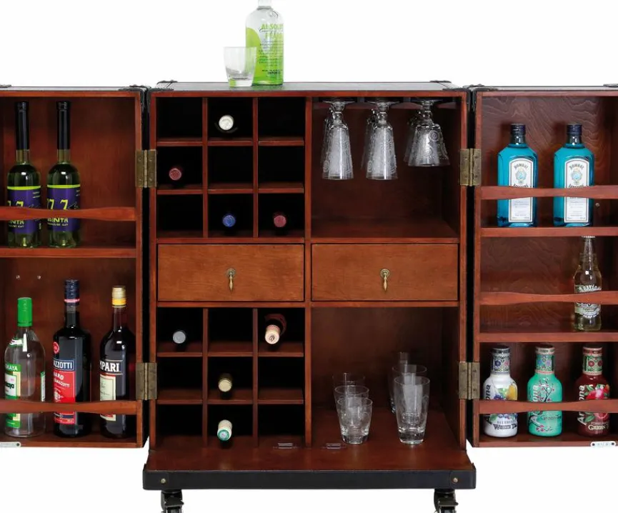 Der Barschrank Globetrotter 77066 von KARE DESIGN bietet sowohl Platz für allerlei feine Spirituosen und Gläser als auch ein herrlich dekoratives Design. Ein Bezug in Krokodiloptik und Griffe im Koffer-Look verleihen dem Möbel Charakter und Extravaganz. Zu Interieur im Kolonialstil passt der Barschrank Globetrotter 77066 zum Beispiel außerordentlich gut.