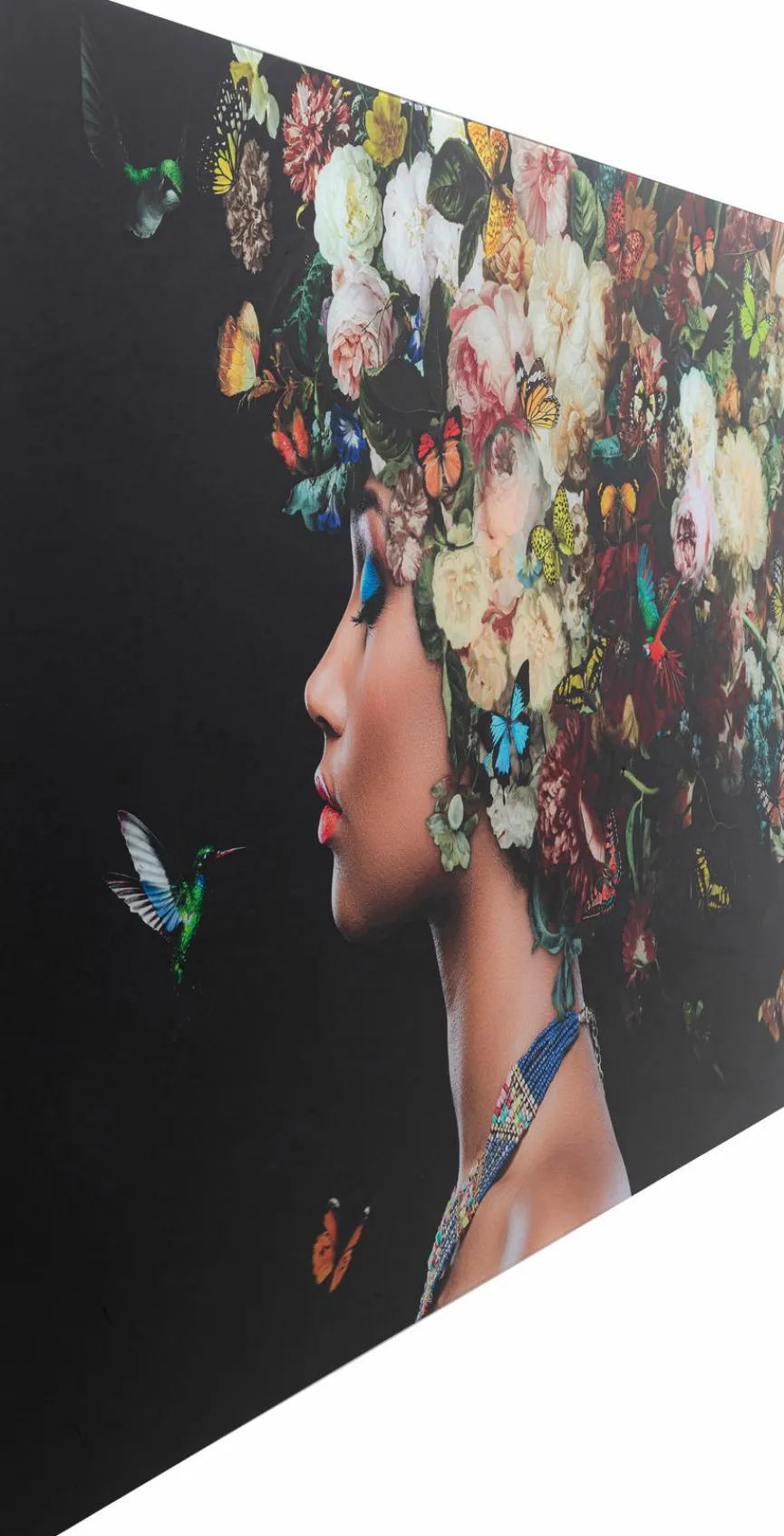 Mit dem Wandbild Bunch of Flowers von KARE DESIGN kehren Grazie und eine raffinierte Prise Exotik in Ihr Zuhause ein. Das Gesicht einer jungen Schönheit, Schmetterlinge, Vögel und prachtvolle Blüten sind auf diesem Deko Bild dargestellt. Kombinieren lässt sich das Wandbild Bunch of Flowers aus dem Hause KARE DESIGN mit vielen modernen Möbelstilen.