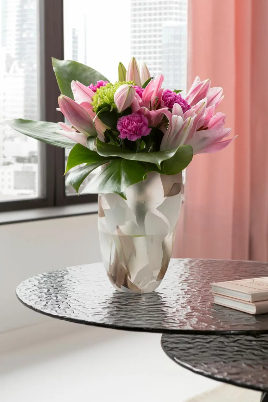 Glas ist ein beliebter Naturwerkstoff und wird aus den Rohstoffen Quarzsand, Kalk und Soda hergestellt. Oberflächen, die aus Glas gefertigt sind, sind besonders glatt und sehr stilvoll. Die glänzende und harte Oberfläche überzeugt durch ihre Widerstandsfähigkeit, Pflegeleichtigkeit und Ästhetik. Zur Pflege der Oberfläche kann ein handelsüblicher Glasreiniger oder ein nebelfeuchtes Mikrofasertuch verwendet werden. Besonders beliebt ist satiniertes Glas – ein mattes Glas, das nicht durchsichtig ist.