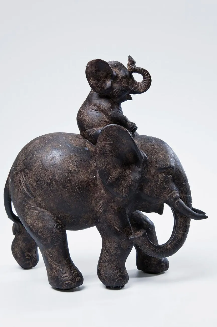Bei dem Deko-Objekt Dumbo Duo von KARE DESIGN reitet ein süßes Elefantenbaby auf dem Muttertier. Seine dunkle Farbgebung fügt sich problemlos in viele Einrichtungsstile ein. Durch die liebevolle Gestaltung können Sie bei dem hübschen Deko-Objekt Dumbo Duo der Marke KARE DESIGN sogar die Hautfalten, Augen und andere Details genau erkennen.