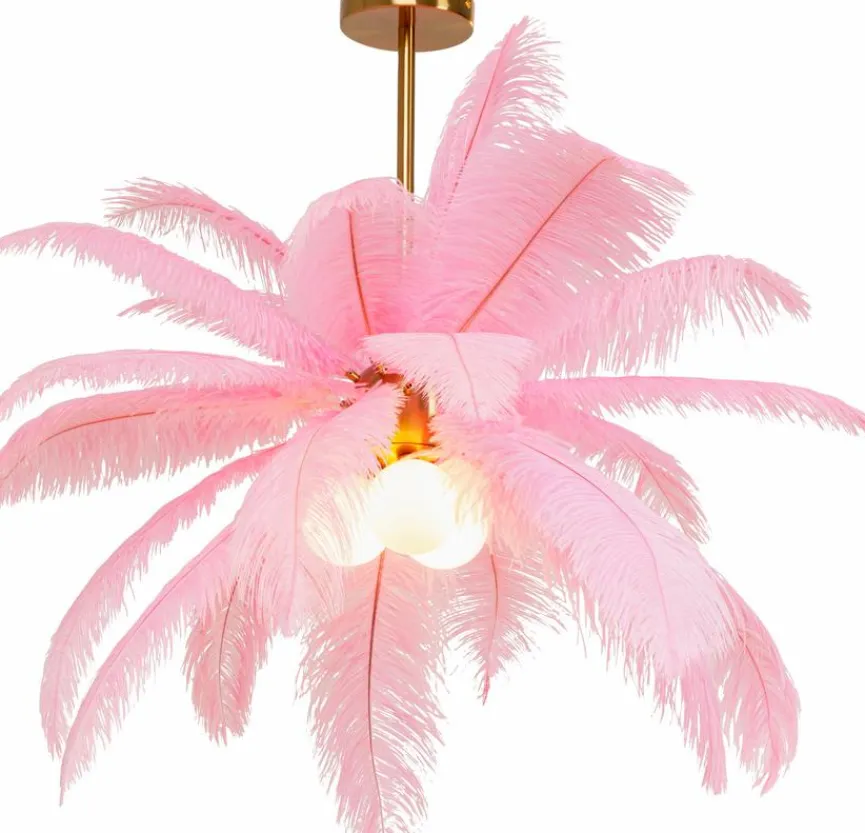 Die charmante Pendelleuchte Feather Palm von KARE DESIGN verbindet mit ihrem exklusiven Design den zauberhaften, femininen Touch des Boudoir-Stils mit dem fröhlichen Lifestyle Floridas. Für eine sanfte Illumination gruppieren sich unter echten Straußenfedern dieser Pendellampe drei kugelförmige, mattierte Glasschirme. Diese außergewöhnliche Stil-Kombination der Pendelleuchte Feather Palm macht sie zum Design-Highlight, das sowohl im Schlafzimmer als auch über dem Couch- oder Esstisch großartig zur Geltung kommt.
