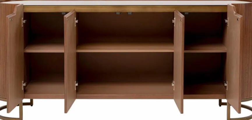 Mit seinem geradlinigen Design und den runden Formen bringt das Sideboard Giorgo 70184 von KARE DESIGN einen Hauch von Gemütlichkeit in Ihre Wohnung. Edles Walnuss-Holz, eine Deckplatte aus Glas und elegante Füße geben der Kommode ein ansprechendes Äußeres. Auch die praktischen Aspekte kommen nicht zu kurz, denn hinter den vier Türen bietet das Sideboard Giorgo 70184 großzügigen Stauraum für Gläser, Tischwäsche und allerlei Krimskrams.