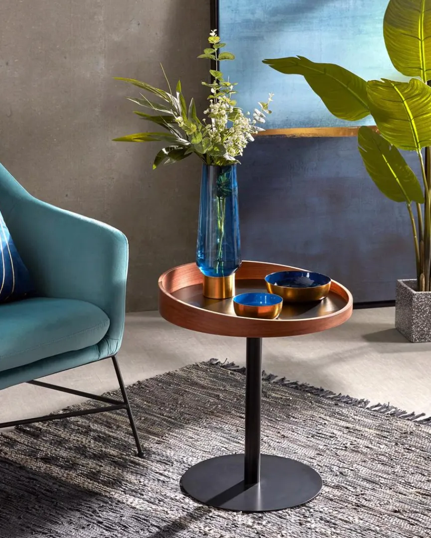 - Tischplatte aus Holzwerkstoff (MDF) in schwarz mit Rahmen in Nussbaum Furniert
