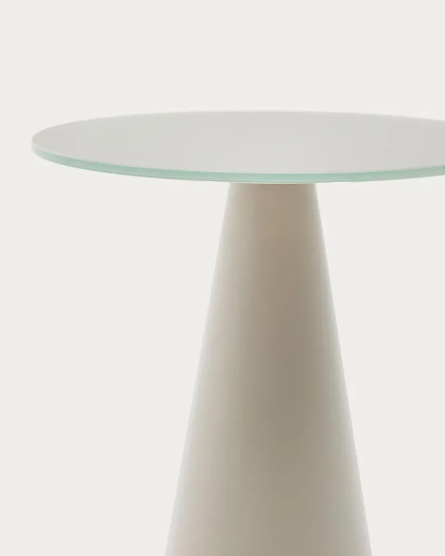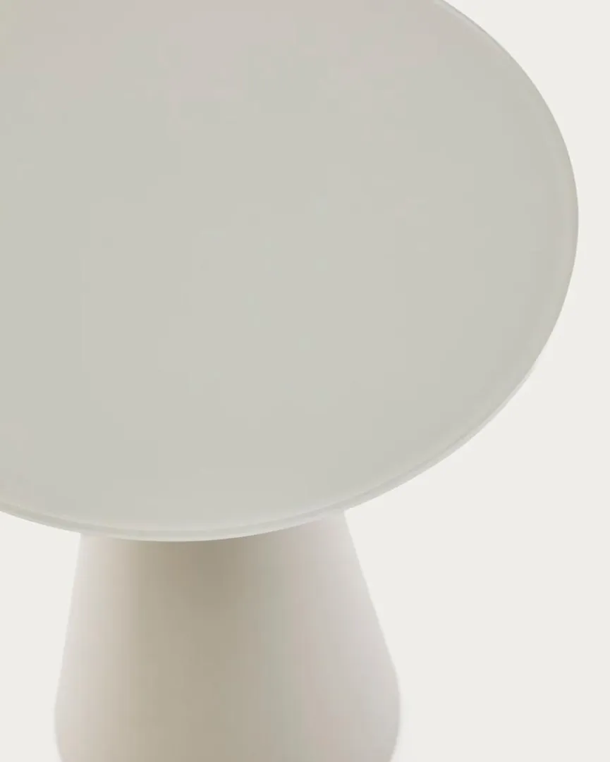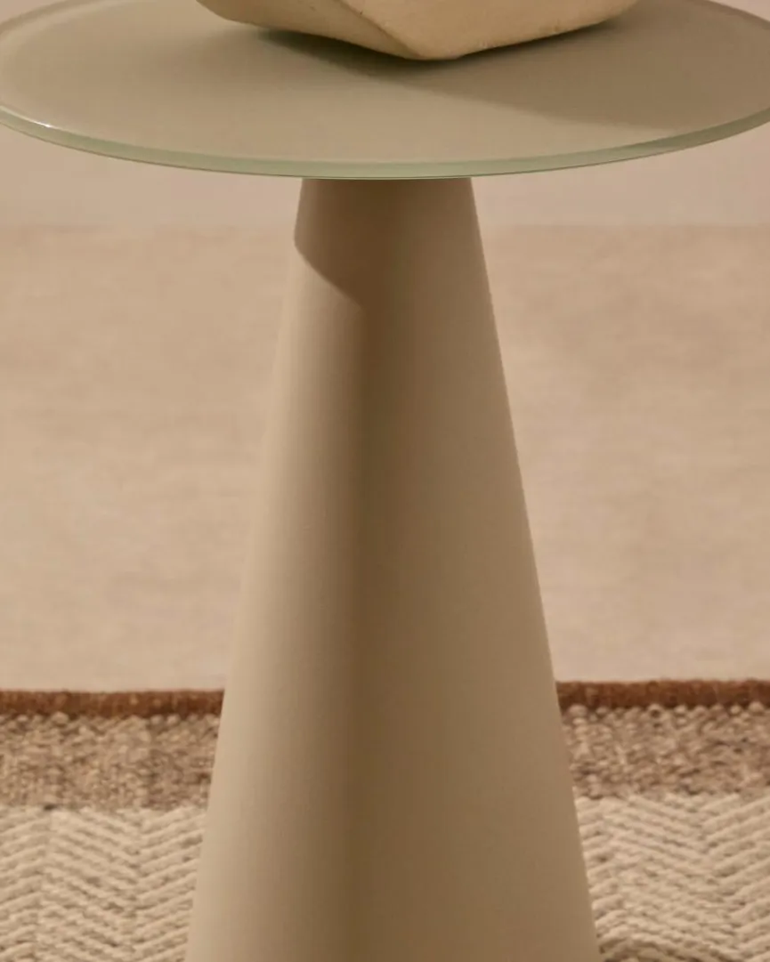Der Beistelltisch Wilshire von Kave Home lenkt mit einer skulpturalen Designidee die Blicke auf sich. Ein kegelförmiger Sockel und eine runde Platte bestimmen den puristischen Chic dieses fantastischen Möbels. In ein minimalistisch gehaltenes Umfeld im modernen Nordic-Look passt der Beistelltisch Wilshire zum Beispiel mit Bravour.