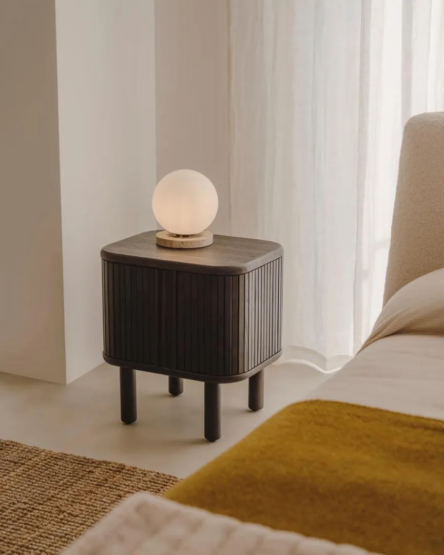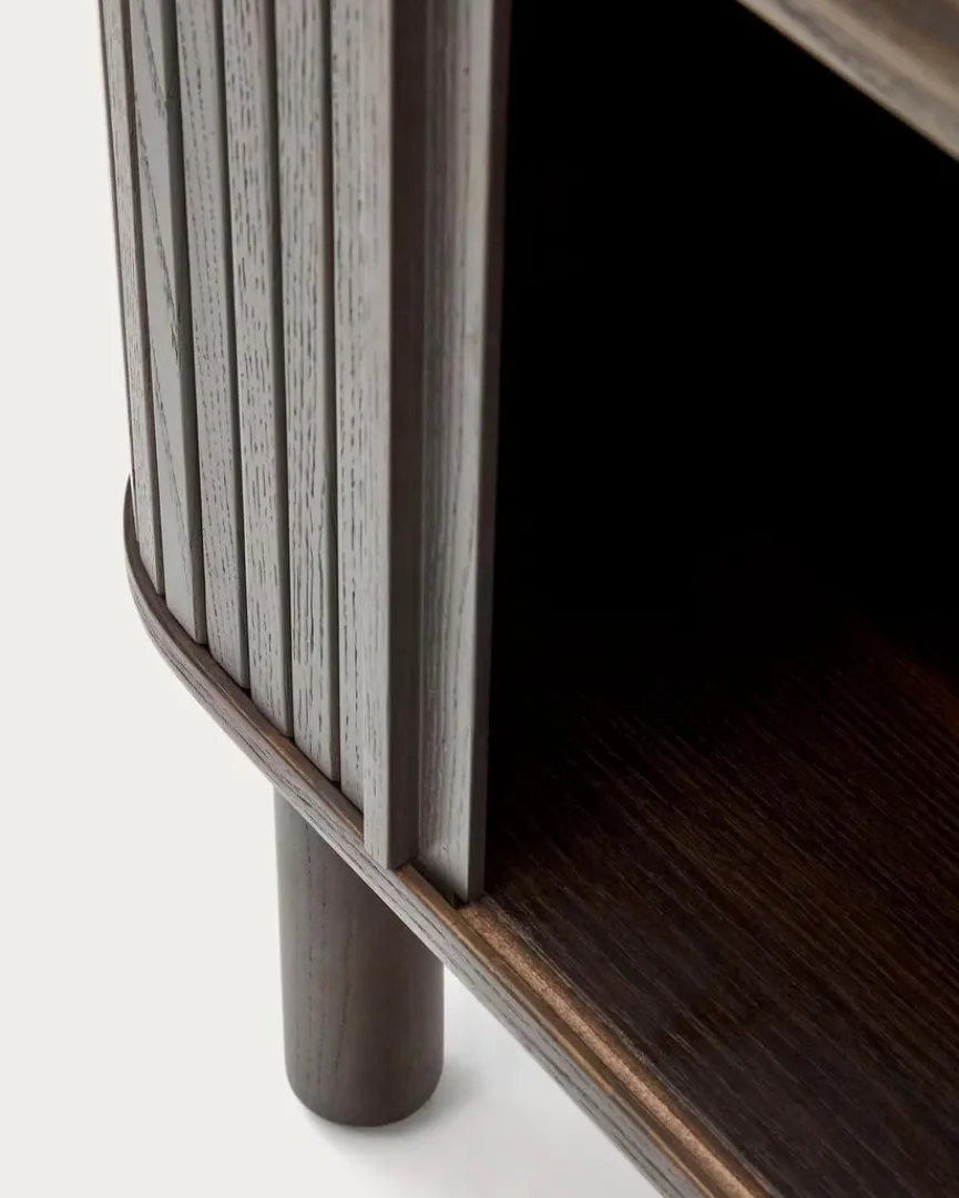 Der Nachttisch Mailen von Kave Home vermittelt Naturverbundenheit, Charme und modernen Chic. Rollladentüren, abgerundete Kanten und viel gemütliches Holz bestimmen bei dieser funktionalen Nachtkonsole die Ästhetik. Eine sehr gute Wahl ist der Nachttisch Mailen zum Beispiel für einen Raum mit einem Bett im puristischen Scandi-Look.