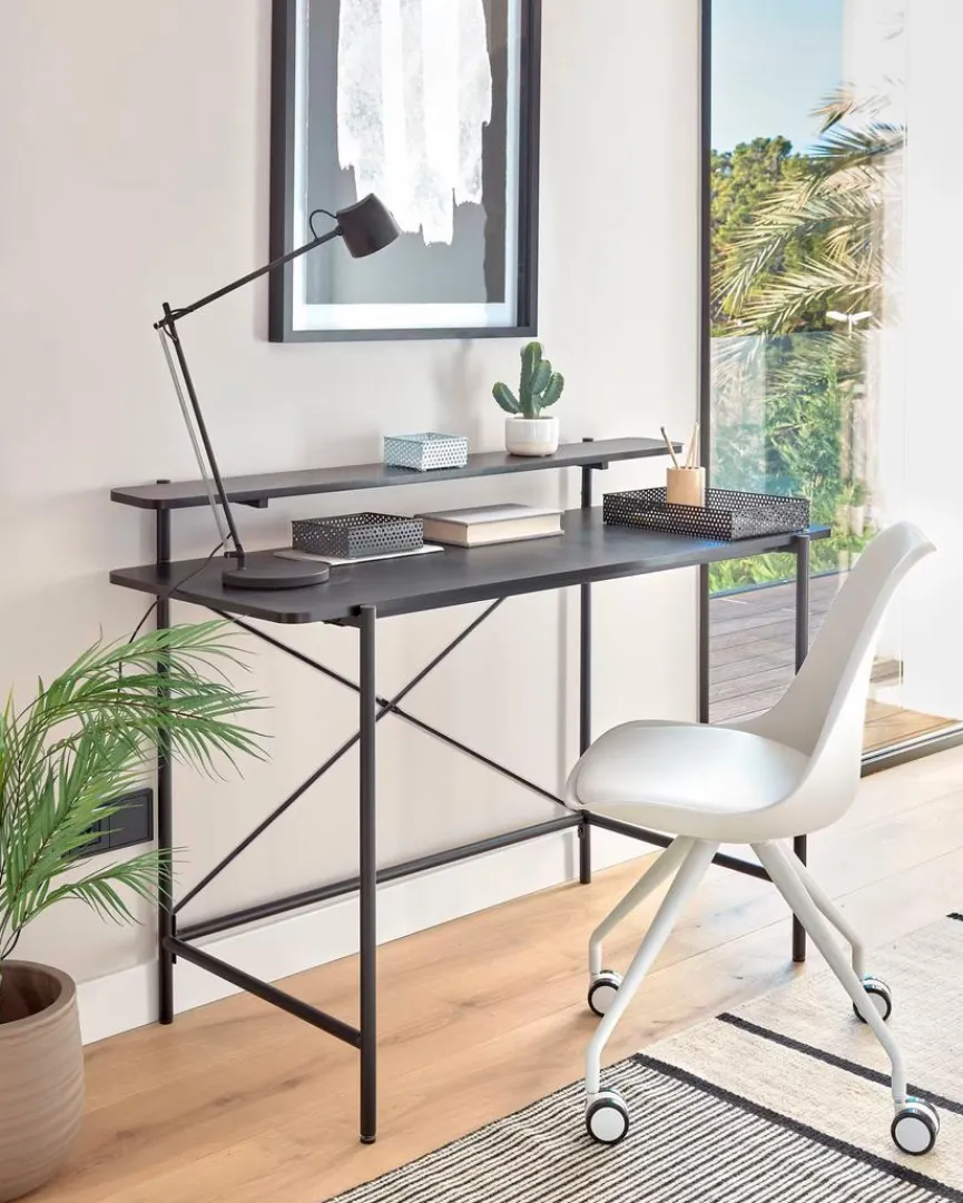 Mit dem Schreibtisch Galatia von Kave Home wird es Ihnen leicht fallen, mehr Ordnung zu halten. Das Ablegregal des Tisches ermöglicht es Ihnen, Büroartikeln einen Platz zu geben und somit die Nutzfläche zu optimieren. Durch sein zeitgenössisches Design passt der Schreibtisch Galatia besonders gut zu modernen Einrichtungsstilen.