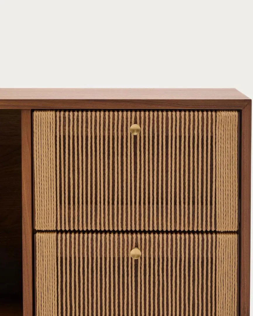 - Front aus Papierseil handgeflochten in natur, Griffe aus Messing