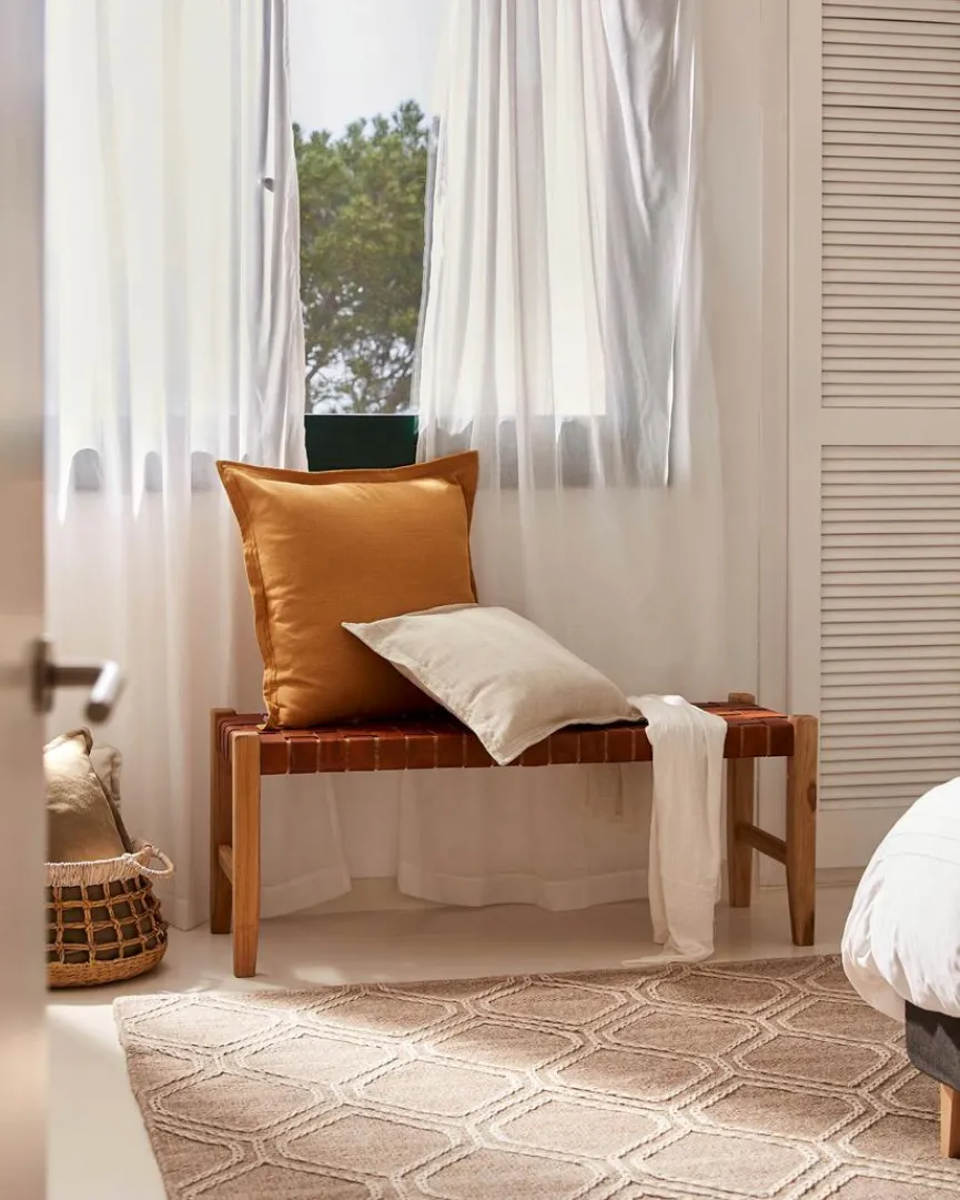 Wenn Sie sich etwas Außergewöhnliches für Ihre Wohnung gönnen wollen, dann liegen Sie mit der Bank Calixta der Marke Kave Home genau richtig. Dank der Texturen sowie der Farbtöne der verwendeten Materialien ist jede Sitzbank ein Unikat. Die Lederriemen der Sitzfläche sind handgeflochten, sodass die Bank Calixta besonders stabil ist und auch Belastungen standhält.