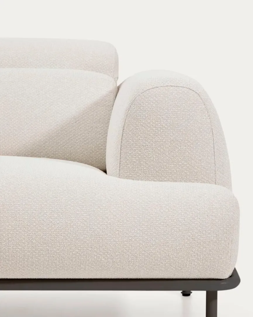 Das Sofa Aurum von Kave Home beeindruckt mit herrlich harmonischen Rundungen. Damit passt diese Couch wunderbar in ein modernes Ambiente von Möbeln, die mit organischen Formen für Charme und Grazie sorgen. Und auch die Funktionalität überzeugt hier. Eine Kopfteilverstellung verleiht dem Sofa Aurum ein Plus an Ergonomie und Komfort.