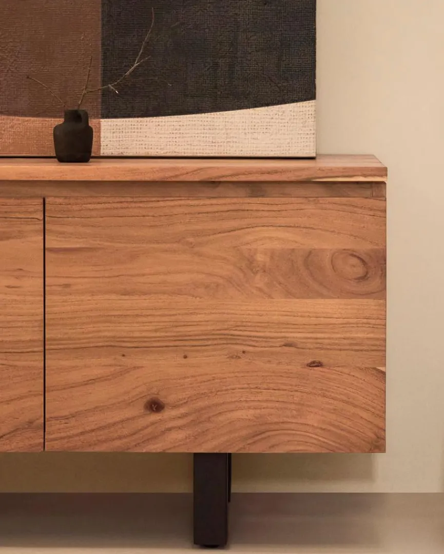 Das TV-Lowboard Uxue der Marke Kave Home ist eine geschmackvolle Wahl für Wohnzimmereinrichtungen unterschiedlichster Art. Insbesondere dank der Verarbeitung von massiver Akazie erzeugt dieser TV-Unterschrank ein behagliches und zugleich ästhetisches Ambiente. Die schicken Füße aus Metall verleihen dem TV-Lowboard Uxue zudem eine besonders stilvolle Note.