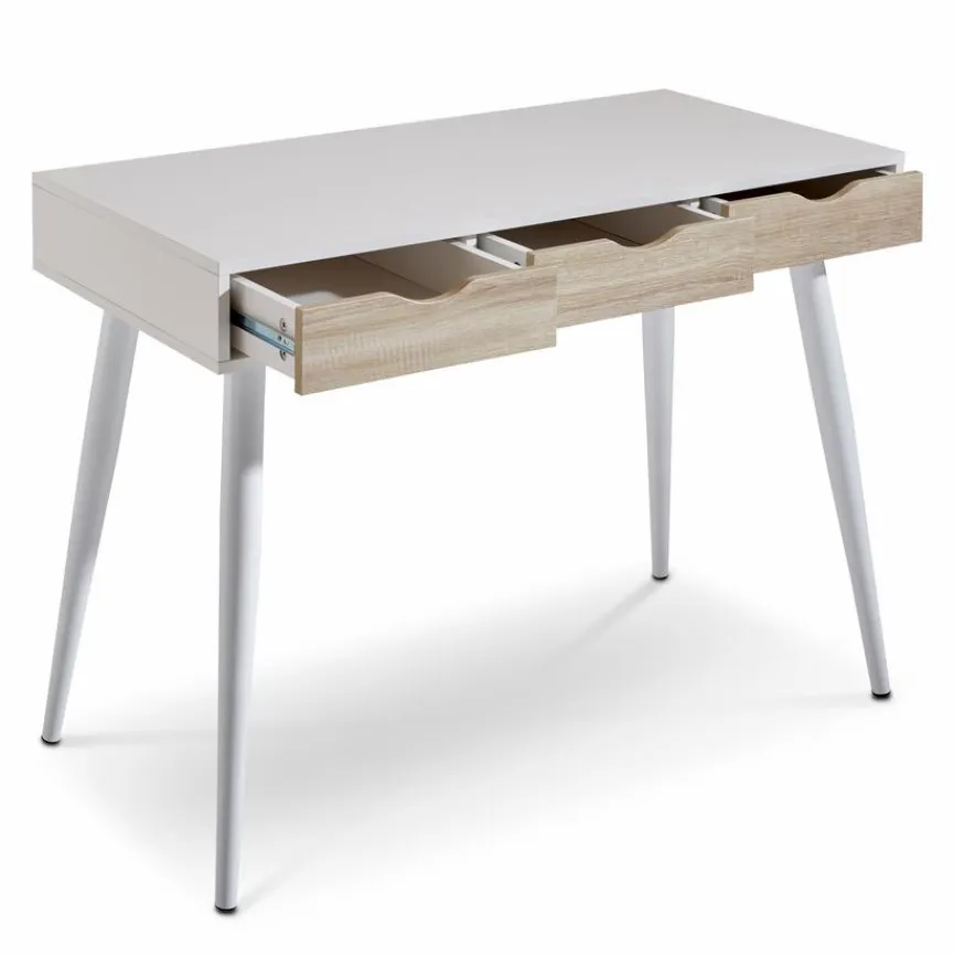 Da macht Arbeiten Spaß! Der Schreibtisch Neptun bietet durch seine außergewöhnliche Linienführung in den Schubladen nicht nur ausreichend Stauraum sondern ist auch noch das optisches Highlight einer jeden Schreibecke. Der Korpus ist trotz der lichten Schönheit robust gestaltet und kann problemlos gesäubert werden. Die formschönen Beine verleihen dem Schreibtisch Neptun eine Leichtigkeit und Transparenz, die sich fast jedem Arbeitsplatz anpasst.