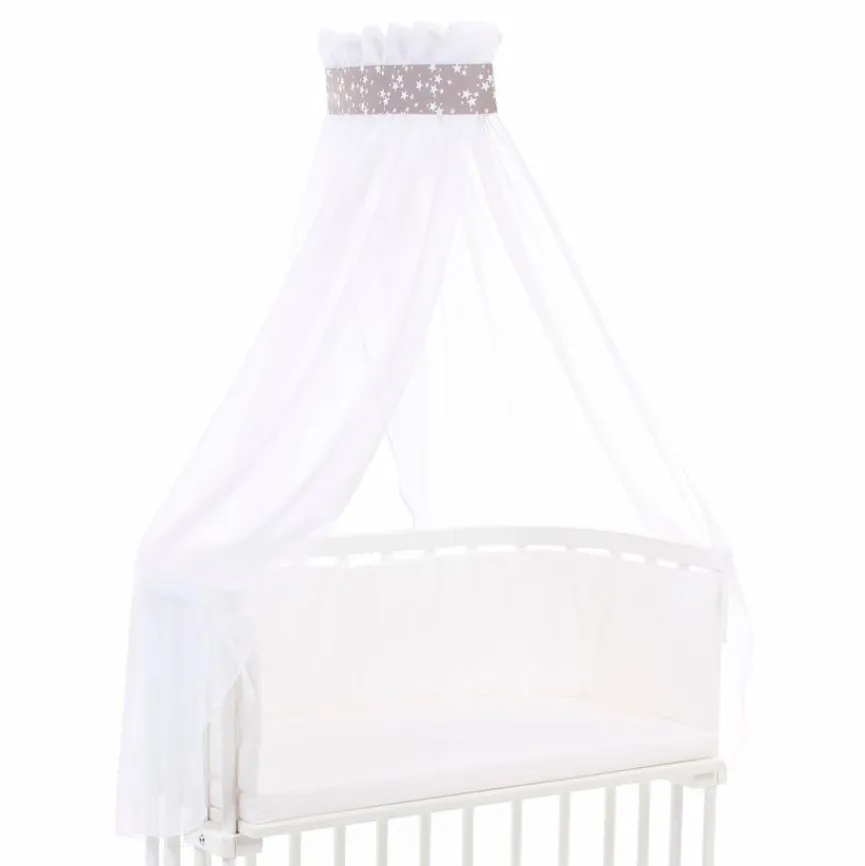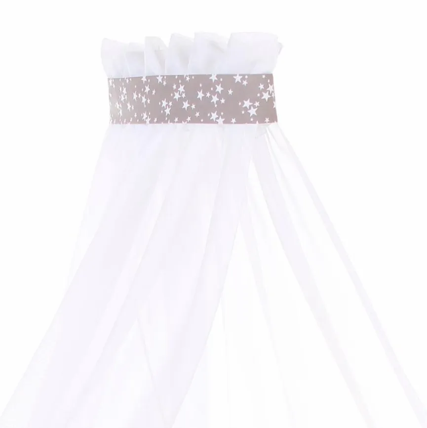 - Himmel in weiß, Bordüre aus Stoff in taupe mit Sternen in weiß