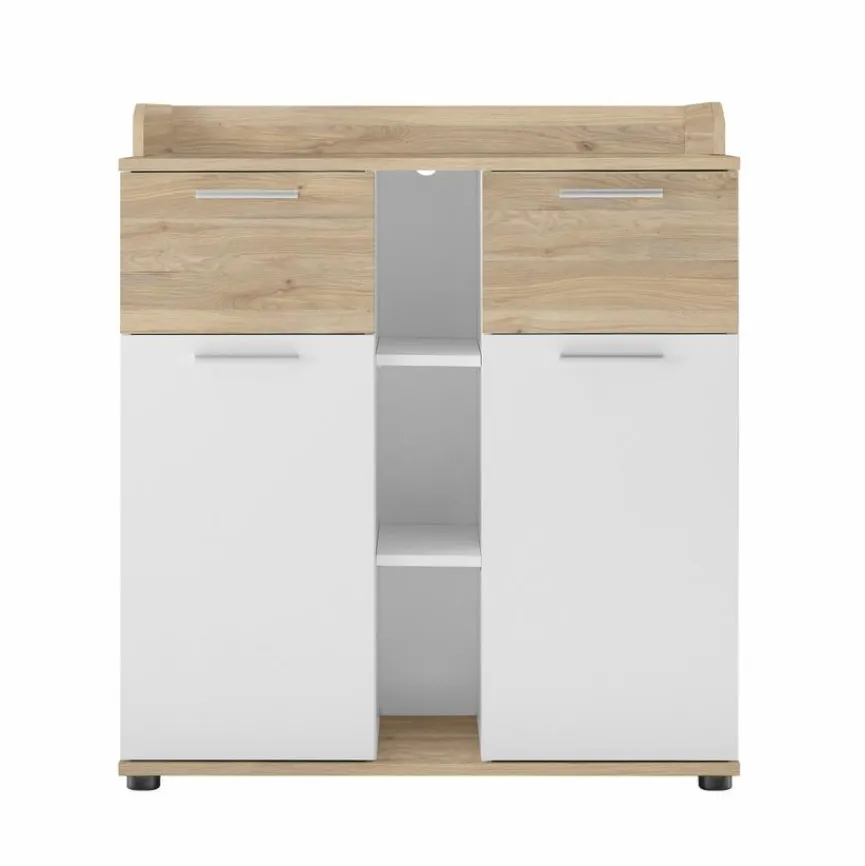 - Mit 2 Türen, 2 Einlegeböden, 3 offenen Fächern und 2 Schubkästen