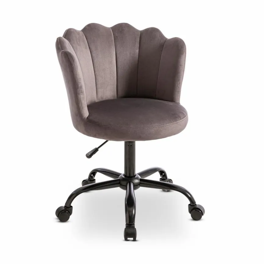 - Bezug aus Stoff in dunkelgrau, Gestell aus Metall in schwarz