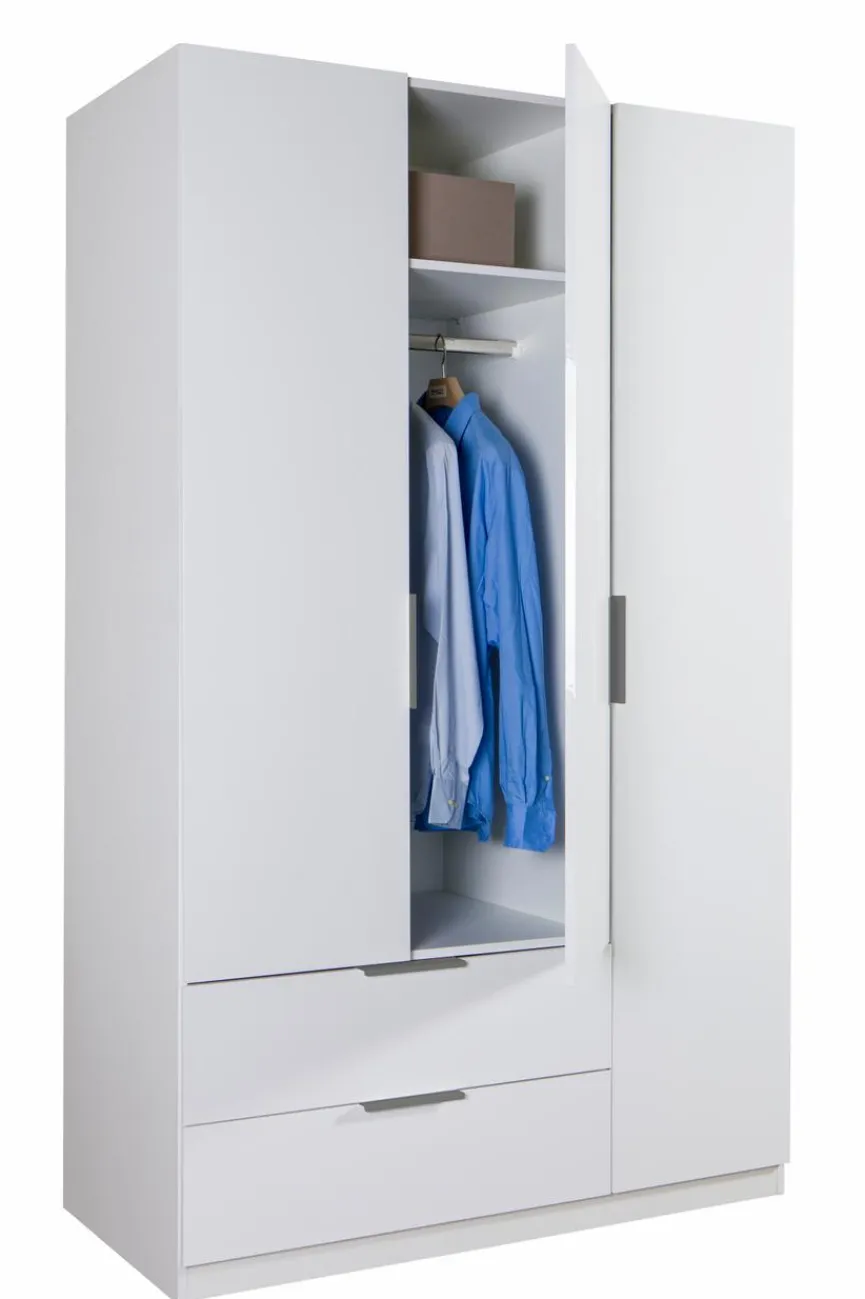 - Kleiderschrank 3 Türen, 4 Einlegeböden, 1 Kleiderstange und 2 Schubkästen