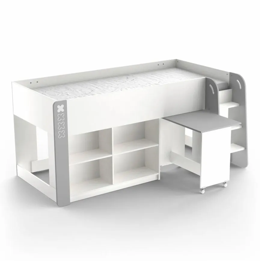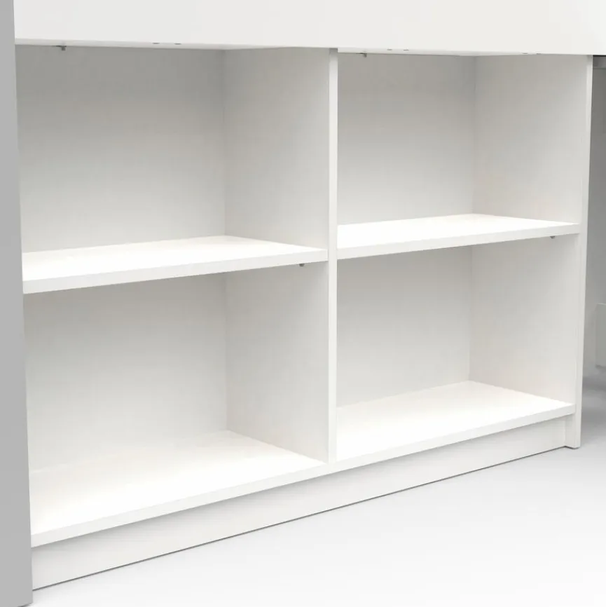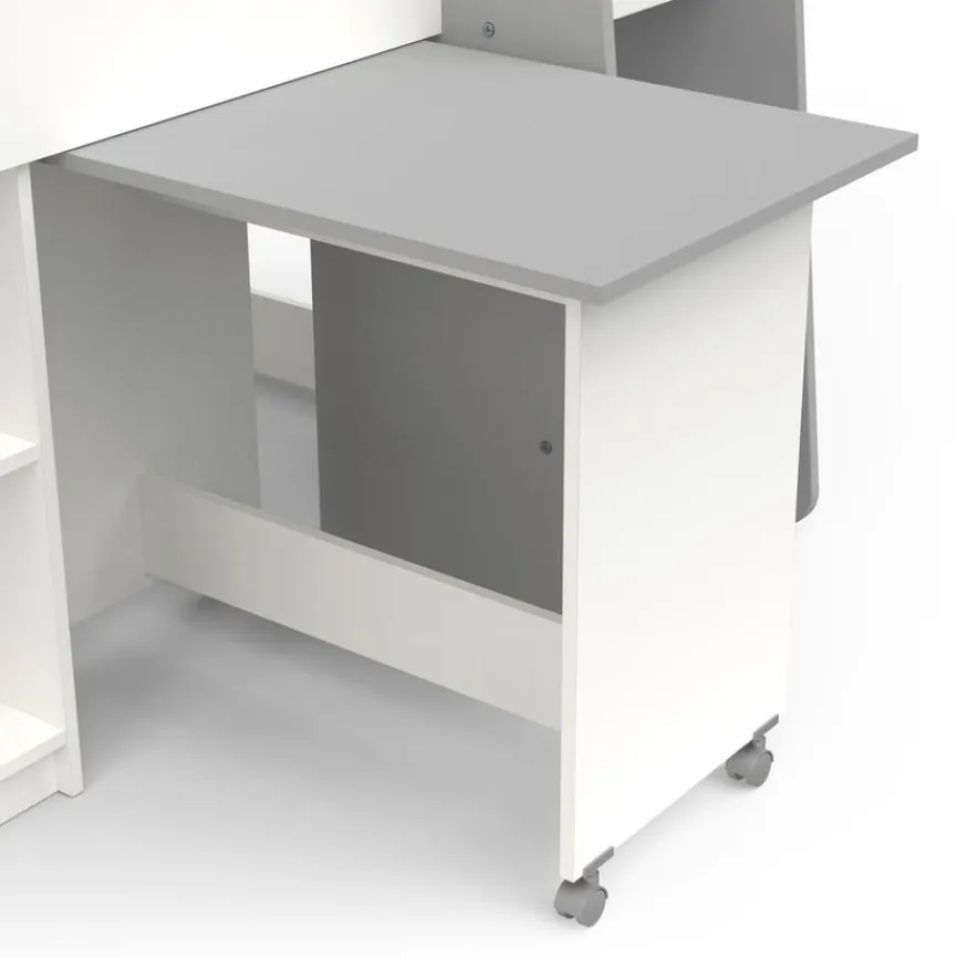 - Inkl. 4 offenen Fächern und 1 Schreibtisch auf Rollen (belastbar bis ca. 20 kg)