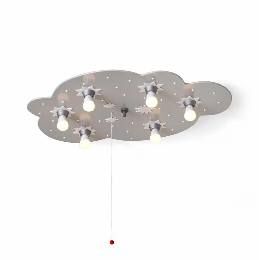 Weißt du, wieviel Sternlein stehen? Mit der Kinderlampe Sternenwolke wissen es Ihre Kleinen bald ganz genau. Die Lampe in Wolkenform sorgt mit ihren sechs regelmäßig verteilten Glühbirnen für sanftes Licht, das über die zugehörige Schnur ganz einfach an- und ausgeknipst werden kann.