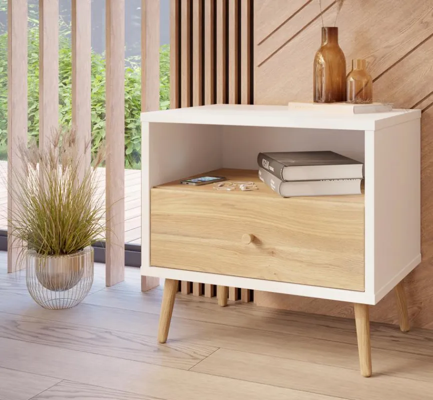 Farbe: Weiß / EicheMaterial: DekorGröße: Breite: 59,80 cm, Höhe: 57,70 cm, Tiefe: 41,50 cm