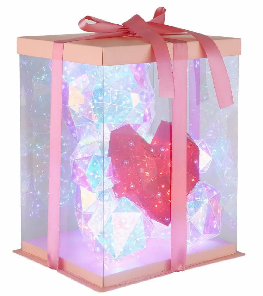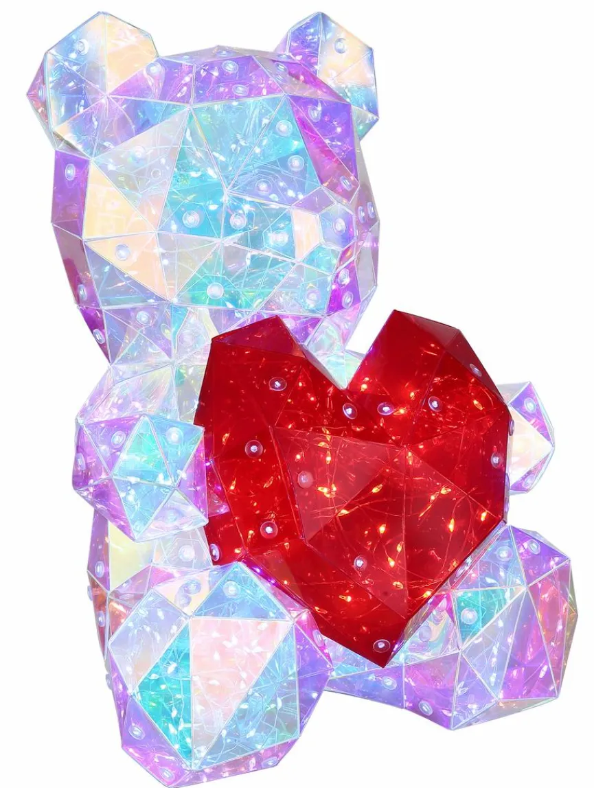 Die niedliche LED-Tischleuchte Brondar von Globo begeistert Interieur-Liebhaber und Stylisten, die ein Faible für exklusives Design mit Pop-Elementen und einem verspielten Touch besitzen. Als süßer Teddy mit Herz bezaubert die stylische LED-Tischlampe und verkörpert zugleich außergewöhnliches, skulpturales Lichtdesign. Der transparente Kunststoff mit Kristalleffekt der LED-Tischleuchte Brondar sorgt für eine irisierende Oberfläche, durch die Lichtstrahlen funkelnd ins Ambiente fließen und es zart illuminieren.