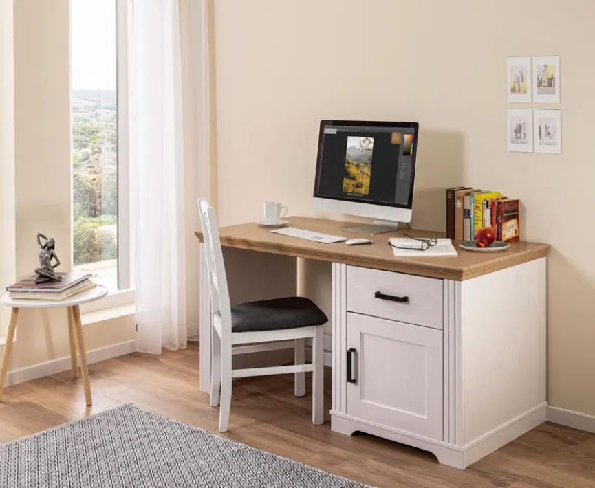 Mit dem hübschen Schreibtisch Maluno von Inter Link bietet das französische Traditionsunternehmen ein perfektes Möbelstück für die Schulzeit. Dieser stabile Schreibtisch bietet viel Platz zum Arbeiten, während seine praktische Schublade und die Klapptür Krimskrams und Schul-Utensilien schnell verschwinden lassen. Ein schönes Detail ist die farblich abgesetzte natürliche Kiefernholz-Platte in Kombination mit dem weißen Korpus, mit der der Schreibtisch Maluno den hellen, angesagten Scandi-Look zitiert.