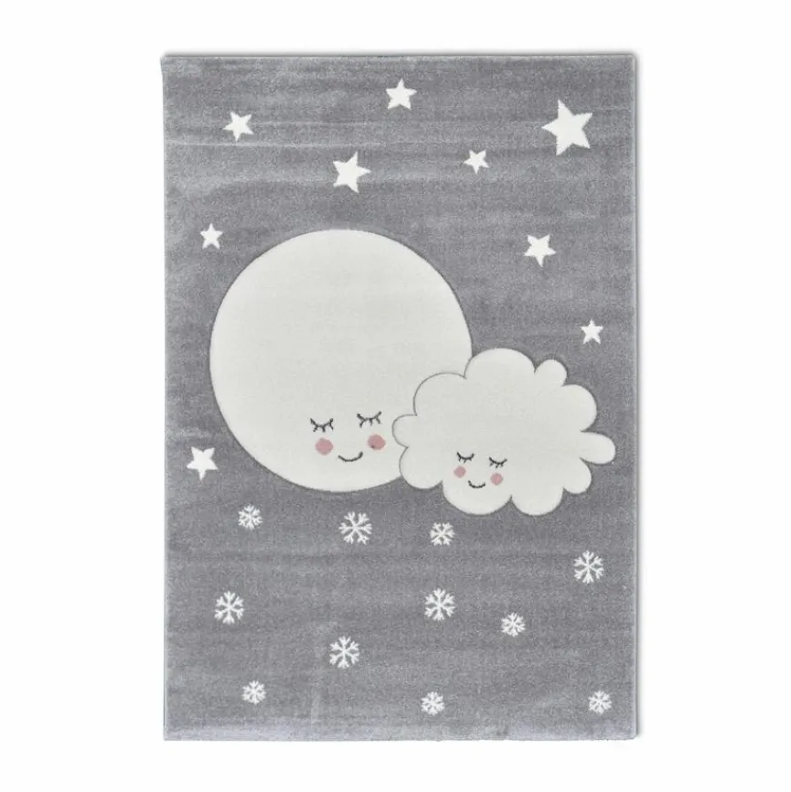 Dieser Kinderteppich Kids 160×230 cm eignet sich hervorragend für das Zimmer der Sprößlinge. Mit seinem schönen Design wirkt der Kinderzimmerteppich beruhigend, denn er zeigt einen schlafenden Mond, eine Wolke, Sterne und Schneeflocken. Natürlich kann auf dem Kinderteppich Kids 160×230 cm auch ausgiebig herumgetollt werden.
