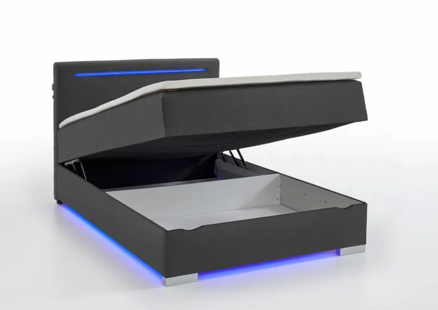 - Umlaufende LED-Beleuchtung auf der Unterseite, Kopfteil inkl. LED-Beleuchtung und USB-Anschluss