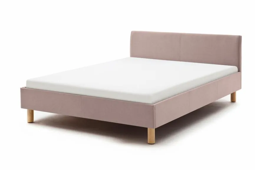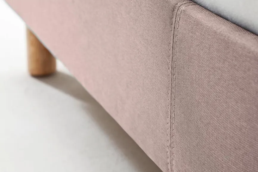 - Bettgestell aus Spanplatte, Füße aus massiver Eiche , Bezug aus 100 % Polyester in altrosa