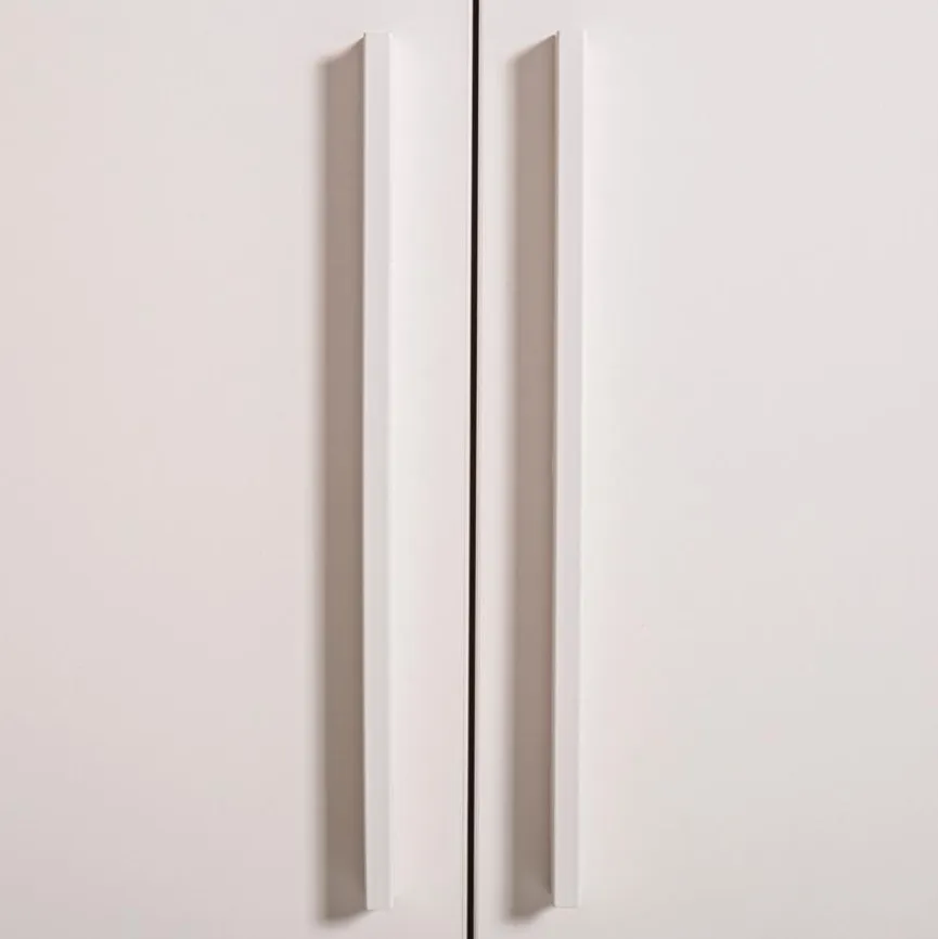 - Kleiderschrank mit 3 Türen, 1 breiten und 1 schmalen Konstruktionsboden, 2 schmale Einlegeböden, 2 Kleiderstangen, 1 Mittelwand und 1 Schubkasten