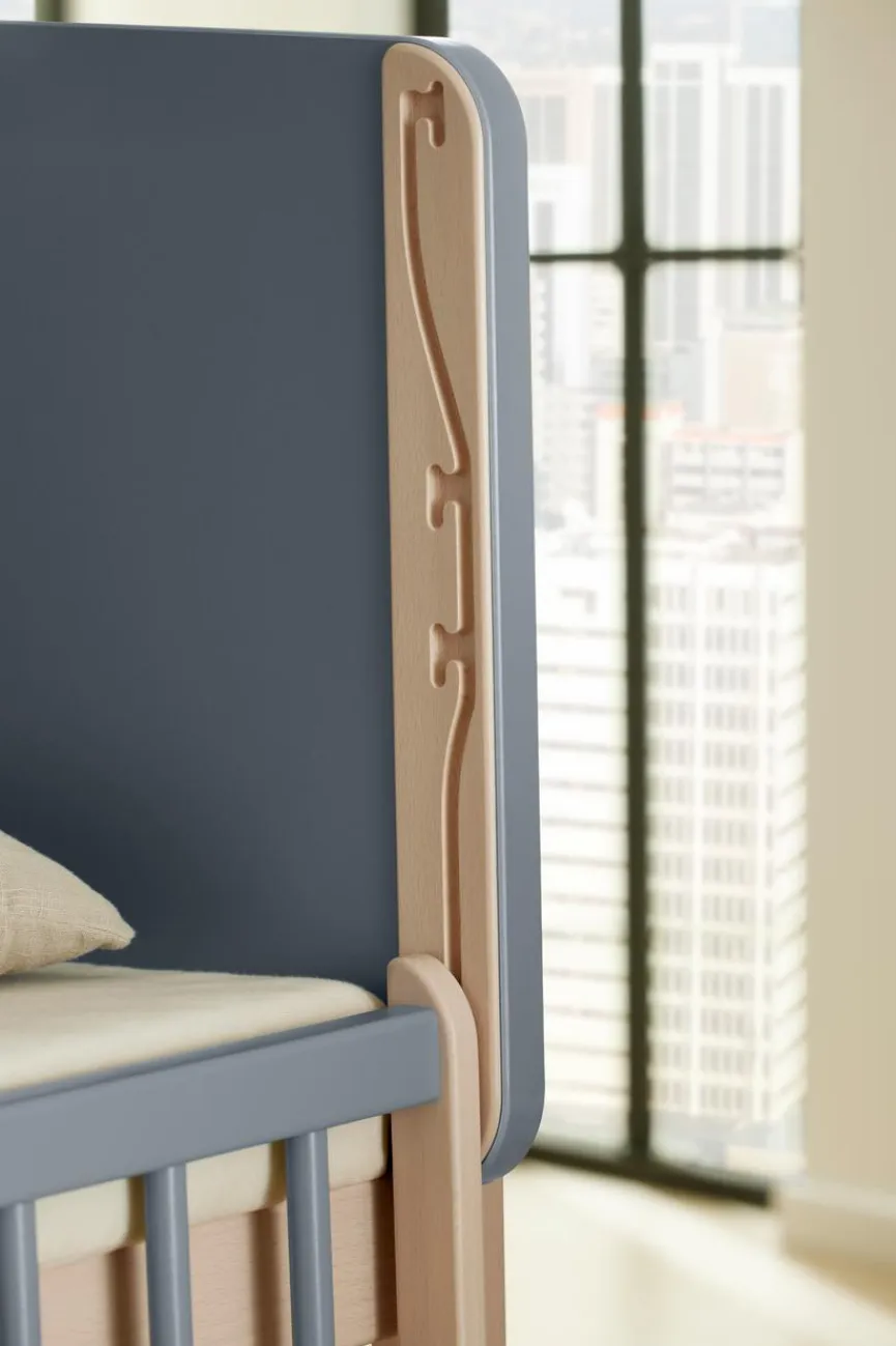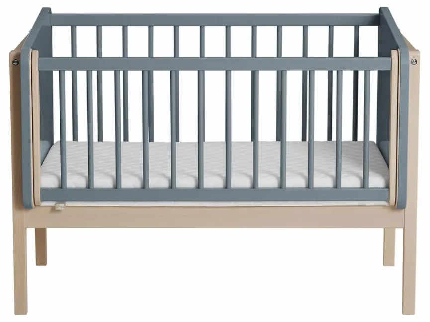 - Durch Abmontieren der Gitterseite kann das Beistellbett zum Kindersofa umgebaut werden.
