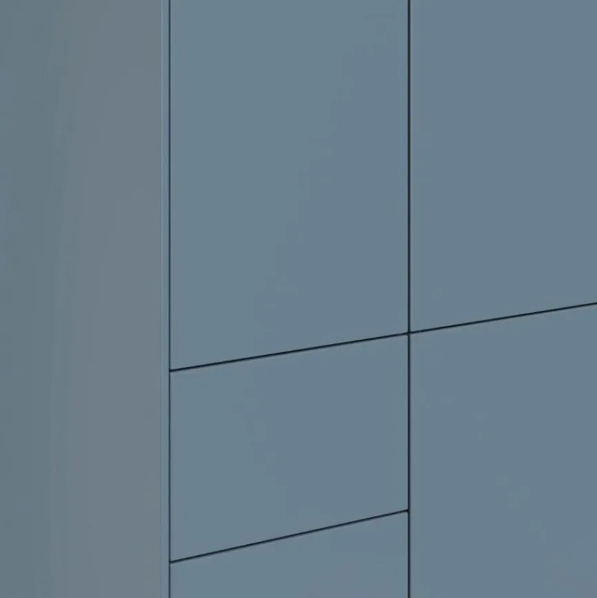 - Gestell aus massiver und natur lackierter Buche, Gitterseiten aus massiver und mattblau lackierter Buche, Häupter aus Holzwerkstoff (Spanplatte) mit kratzfester Melaminharzfolie in mattblau