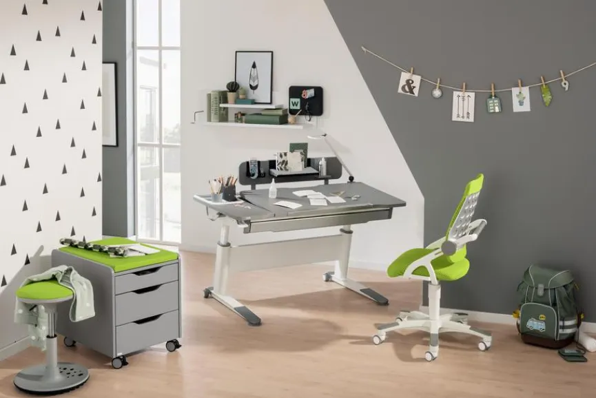 - Sitzhöhe mit speziell für Kinder abgestimmter Gasdruckfeder stufenlos verstellbar