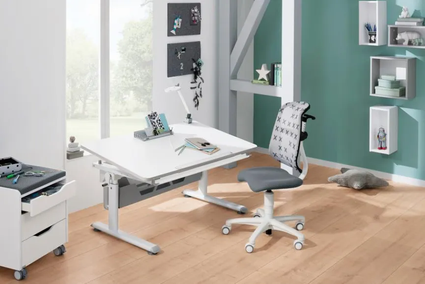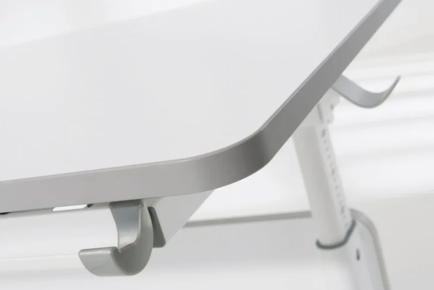 - Aus Spanplatte mit kratzfester Melaminharzfolie in kreideweiß, Gestell, Ablagemulde und Taschenhaken aus Kunstoff in weiß
