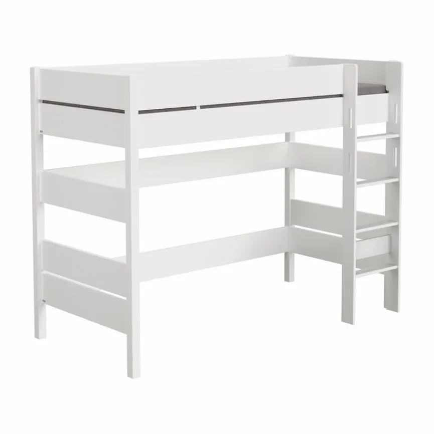 - Aus Holzwerkstoff (Spanplatte) mit kratzfester Melaminharzfolie in kreideweiß, Bettpfosten und Leiter aus massiver und kreideweiß lackierter Buche